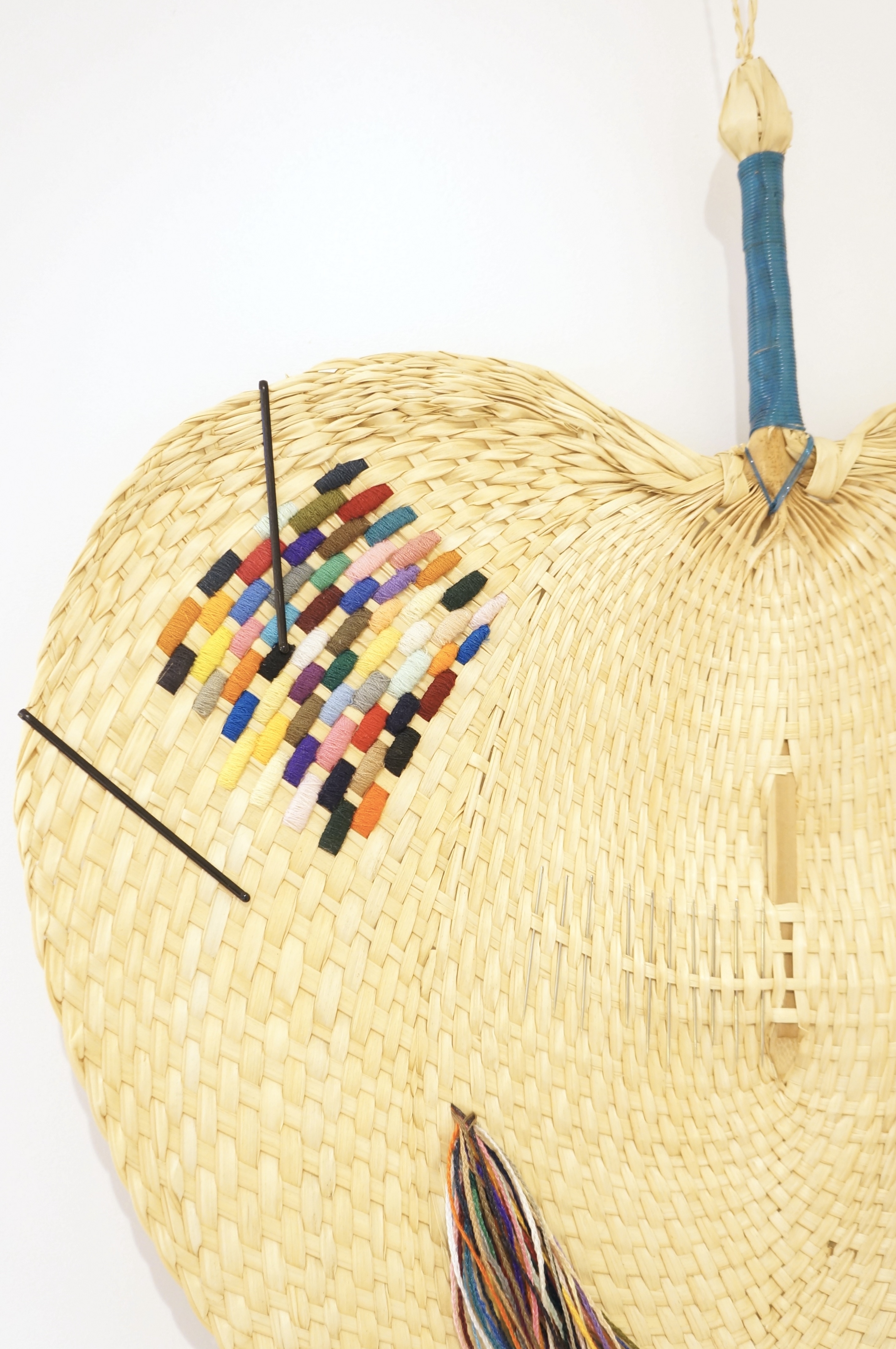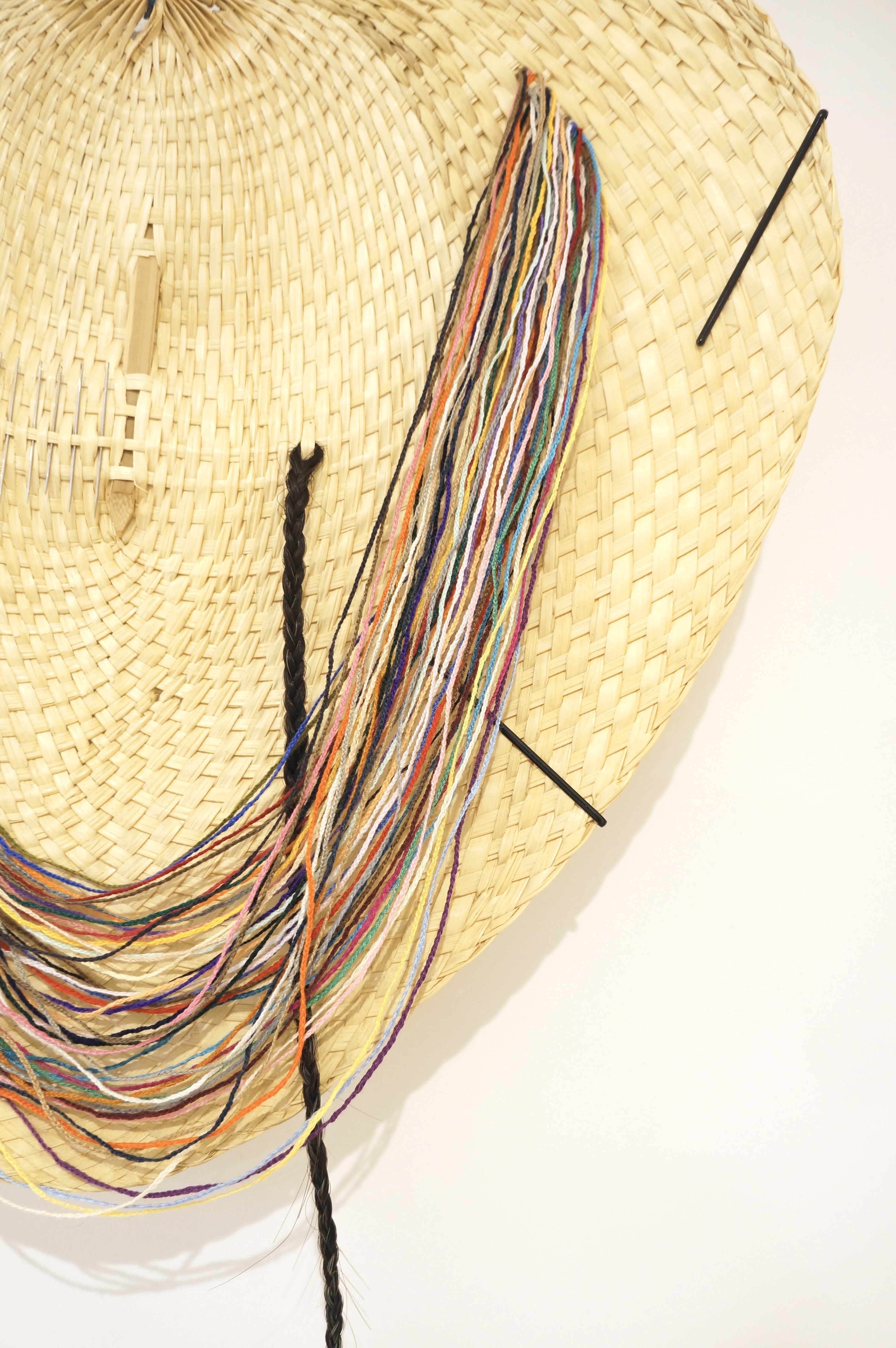 Materials: 蒲葵 woven fan, thread, hair, needles, hair pins
